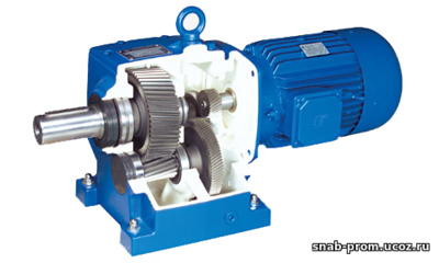 Цилиндрические редукторы на сегодняшний день наиболее распространены в промышленности и технике. Они имеют высокий коэффициент полезного действия, свыше 90 %, а также малую изнашиваемость механизмов даже в самых неблагоприятных условиях. Типичным представителем является мотор редуктор 4МЦ2С применяющийся в различных областях промышленного производства. Он предназначен для долговременной работы, вплоть до круглосуточных режимов. Работает в сети 50-60 Гц, различных мощностей.